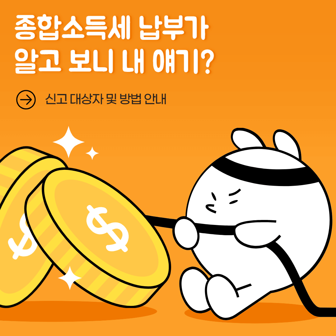 종합소득세란 개인이 한 해 동안 얻는 모든 소득에 대해 부과되는 세금입니다. 이에는 급여소득, 사업소득, 이자소득, 배당소득 등 다양한 종류의 소득이 포함됩니다. 소득의 종류에 따라 과세 방식과 세율이 다르게 적용될 수 있습니다. 더 자세한신고방법 및 내용은 홈페이지를 통해 확인해주세요.