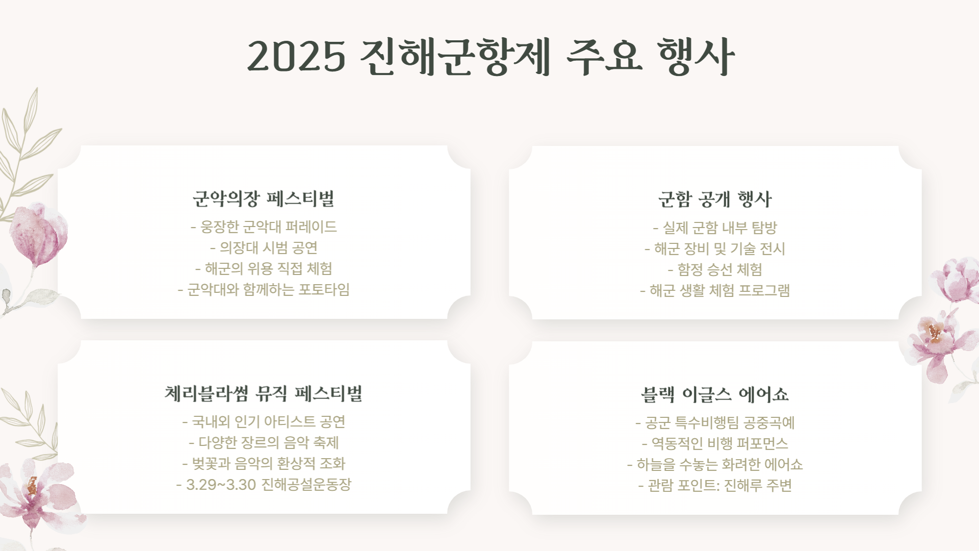 🏡 2025 진해군항제 주요 행사를 살펴볼게요.